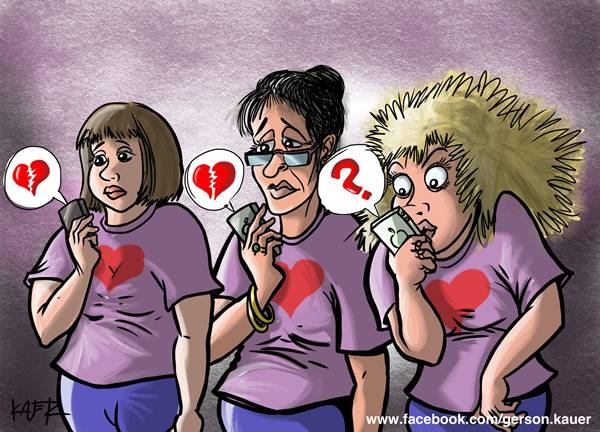 Então, foi solicitado que todas pegassem seus celulares e enviassem um “SMS” aos cônjuges, namorados ou companheiros: “Te amo muito, querido”.