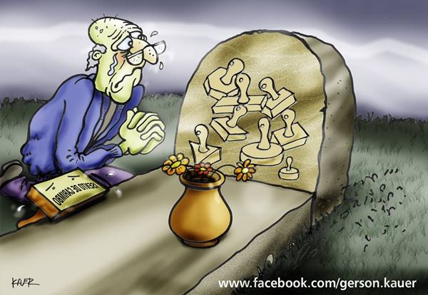 O tabelião ficou inconsolável; olhava com tristeza a sua coleção de carimbos agora inútil. Mas acabou por arranjar uma maneira inteligente de manter a sua “carimbação” em todos os papéis que por ali transitavam.